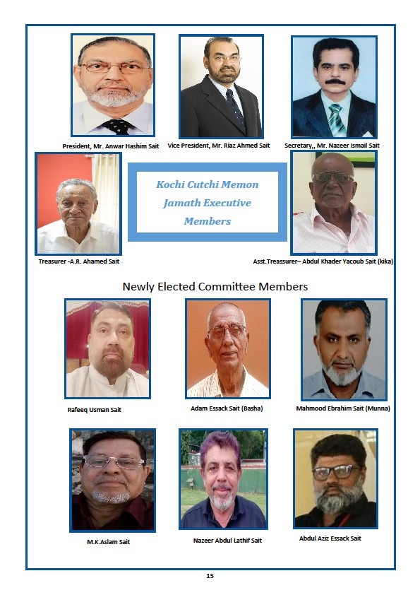 Mr. Nazeer Ismail Sait is the new General Secretary and Mr. Rafeeq Usman Sait, Mr. Adam Essack Sait, Mr. Mahmood Ebrahim Sait, Mr. M.K.Aslam Sait, Mr. Nazeer Abdul Lathif Sait, Mr. Abdul Aziz Essack Sait are the new managing Committee members.