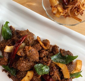 Garnish Biriyani: Cashew nut – 15 Nos., Raisins – 20 Nos., Onion – ˝ (Sliced), Ghee – 2 tbsp., Co-riander Leaf – Handful (Chopped)