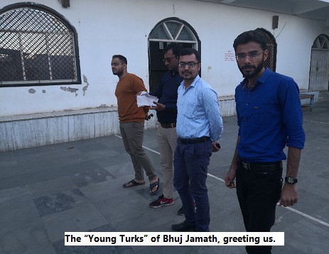 Bhuj, is the center of the federation of 22 Jamaths in Kutch. Bhuj, Mandvi, Mundra, Naliya, Kothara, Vdadiya, Goyalmokhera, Memonvand, Pandhro, Mindiyari, Fulra, Gadsisa, Kodey, Shirva, Bharaper, Dahisra, Gagoder, Godhera, Kisanper, Basvav, and Khrakuva. All these Jamaths work closely together, helping each other and developing a strong bond between them. They conduct mass marriage every year which reduces the burden of marriage expenses. Their income is the rent from the shops, donations and the rent from the Jamath khana they give for functions to the memons and non-memons alike. They informed us that their Jamath is, Alhamdulillah, financially well to do and self reliant. (Some among us jokingly said before going that they may ask us for financial help - this was far from the truth).